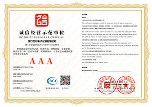 AAA級(jí)誠(chéng)信經(jīng)營(yíng)示范單位